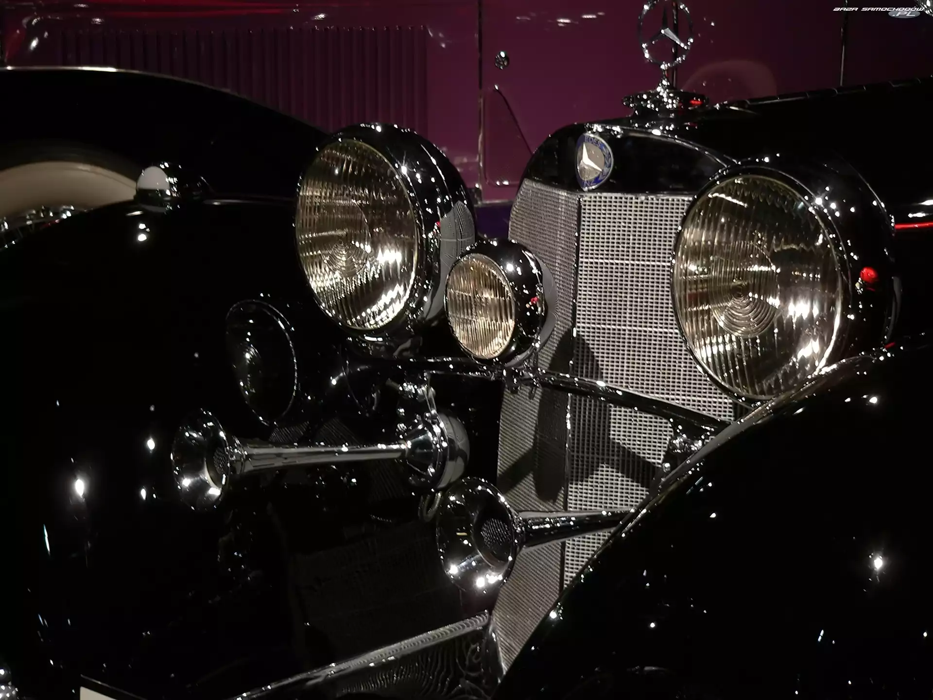 Samochody Zabytkowe, klakson, Mercedes, światła- Zdjęcia samochodów